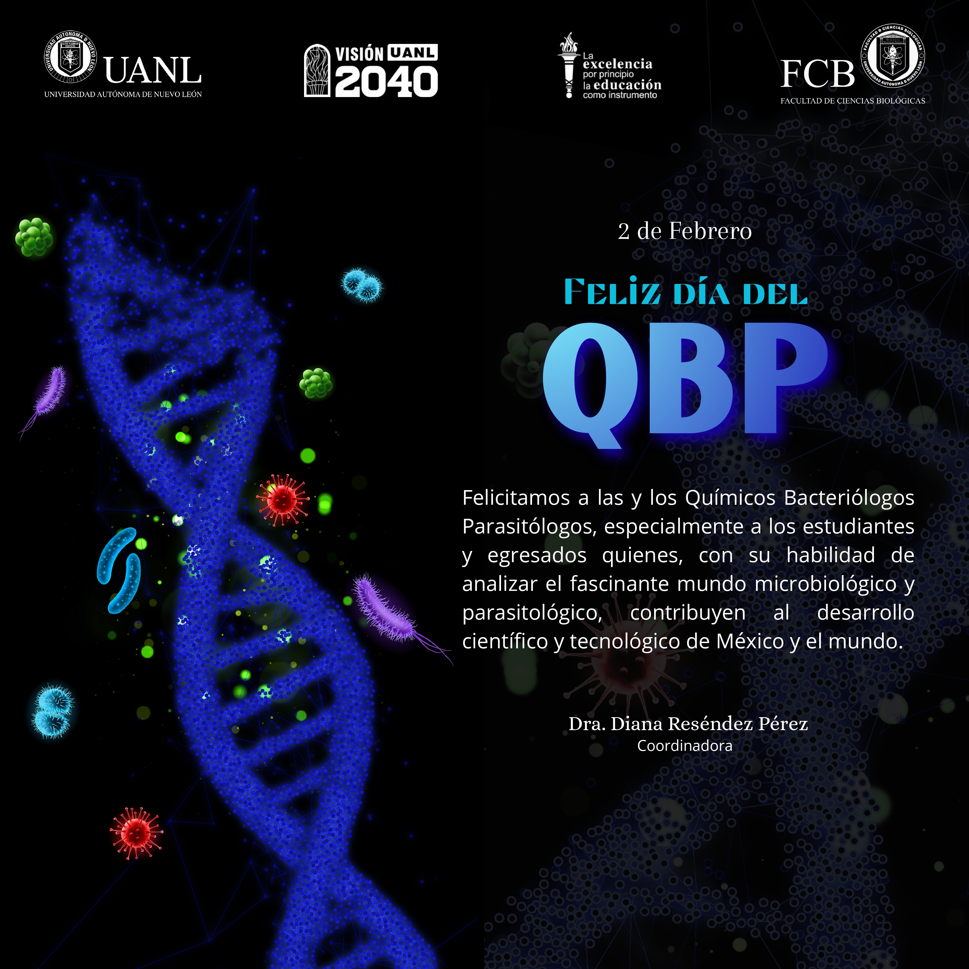 Mensaje de felicitación de la Dra. Diana Reséndez Pérez, con motivo del Día del Químico Bacteriólogo Parasitólogo, 2 de Febrero de 2026